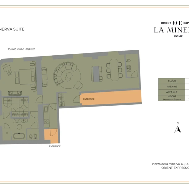 A tribute to Minerva Goddess, featuring high ceilings with spectacular views of the Pantheon and Minerva Square from the top floor. Living and dining space with kitchen and powder room. Marble bathroom with double sink, walk in shower and bathtub, and Honor Private Bar.