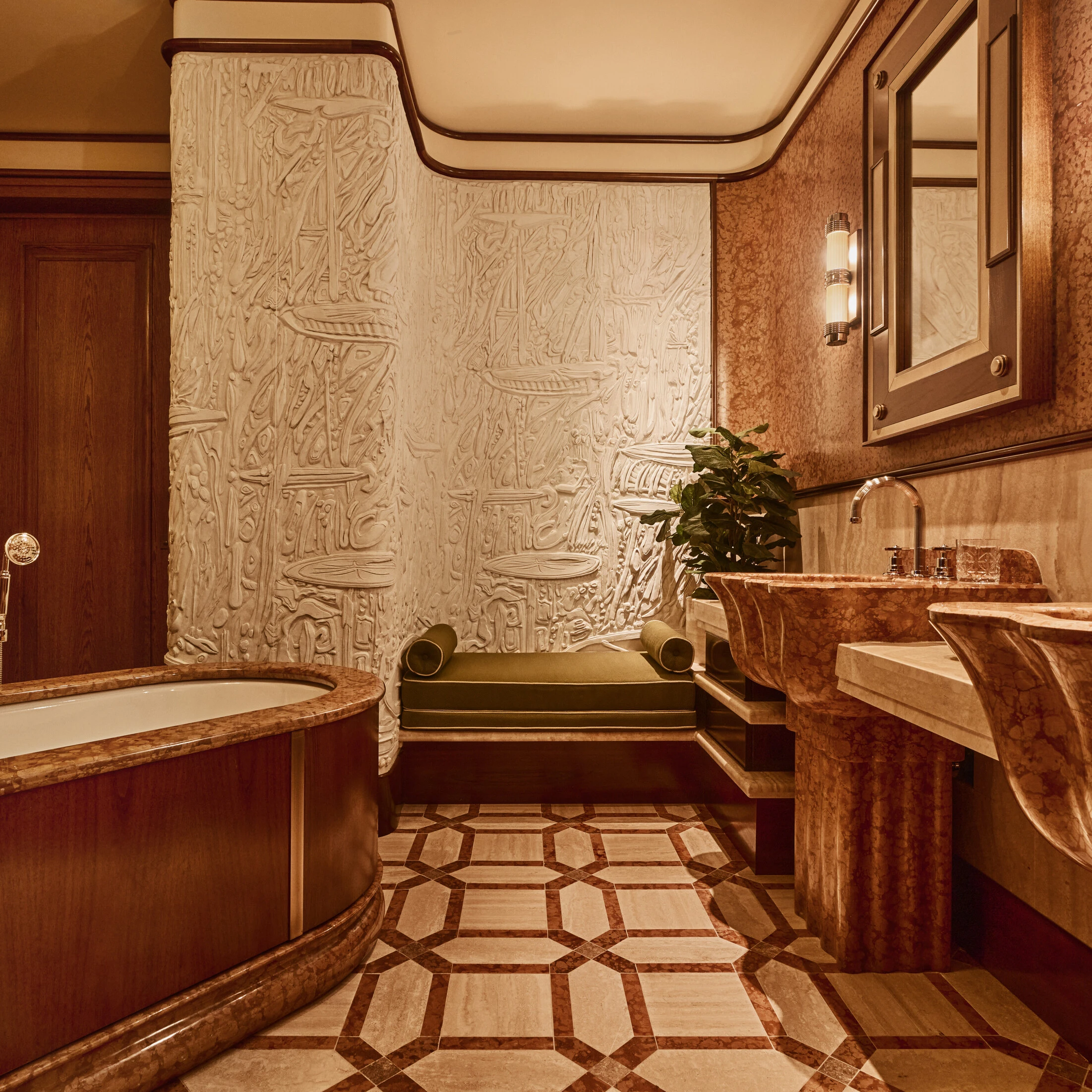 The Obelisco Suite may be connected to a Deluxe Room with a stunning Pantheon view, forming a refined two-bedroom residence of 178 sqm.