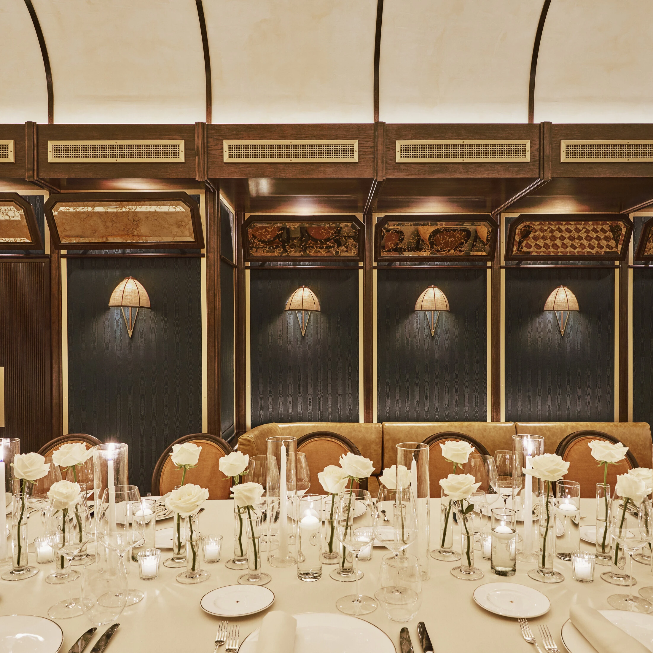 La salle Rinaldi, d’une superficie de 54 m2, rappelle l’intérieur des wagons vintage de l’Orient Express et évoque le charme des voyages légendaires avec ses détails raffinés et son élégance intemporelle. Un espace unique et polyvalent au rez-de-chaussée, où se mêlent histoire et raffinement pour créer le décor idéal pour vos réunions d’affaires, dîners privés ou réceptions intimistes.