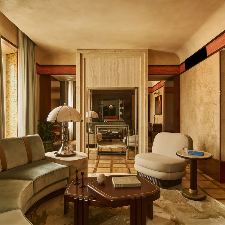 La signature Suite Orient Express, di 190 mq, rende omaggio all’eredità del leggendario marchio combinando l’inconfondibile stile Art Déco con un tocco moderno. Affacciata sul Pantheon e su Piazza della Minerva, offre un sontuoso soggiorno con sala da pranzo, vanity desk e bagno di servizio. Il lussuoso bagno, completo di doppio lavabo, doccia all’italiana e vasca da bagno, invita a concedersi un momento di relax in un’atmosfera esclusiva.